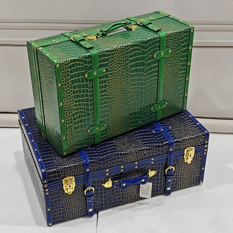 Europäischer Stil Rechteckiger Holz-Vintage-Aufbewahrungskoffer Set Truhe Box PU-Leder Aufbewahrungskoffer mit Griff
